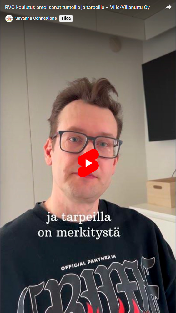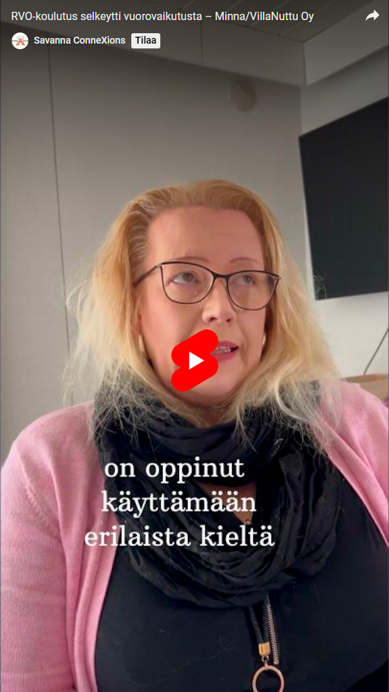 Näissä Youtube-videoissa Savanna ConneXions Oy:n RVO®-koulutuksen käyneet kertovat, miten rakentavan vuorovaikutuksen taidot näkyvät heidän arjessaan.